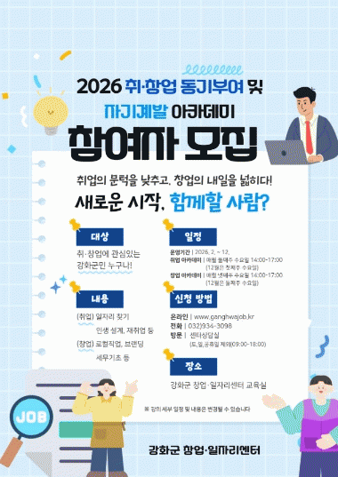 À̹ø ¡®2026³â Ãë?â¾÷ µ¿±âºÎ¿© ¹× Àڱ⠰è¹ß ¾ÆÄ«µ¥¹Ì¡¯´Â 2026³â ±¸Á÷ÀÚµéÀÇ ¼º°øÀûÀÎ Ãë¾÷À» µ½°í â¾÷ÀÚÀÇ »ç¾÷·ÂÀ» °ÈÇϱâ À§ÇØ ¸¶·ÃµÆ´Ù.