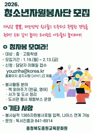 'û¼Ò³âÀÚ¿øºÀ»ç´Ü'Àº ¡ã¾î¸°ÀÌ ´ë»ó Ã¥ ÀоîÁֱ⠡㵵¼°ü Çà»ç Áö¿ø ¡ãµµ¼ ¹× ¼°¡ Á¤¸® µîÀÇ È°µ¿¿¡ Âü¿©Çϸç, ºÀ»ç °æÇèÀ» ¹ÙÅÁÀ¸·Î Áø·Î Ž»öÀÇ ±âȸµµ Á¦°øÇÑ´Ù. Âü¿© Çлý¿¡°Ô´Â 1365ÀÚ¿øºÀ»çÆ÷ÅÐÀ» ÅëÇØ ºÀ»ç ½ÇÀûÀÌ ÀÎÁ¤µÈ´Ù.