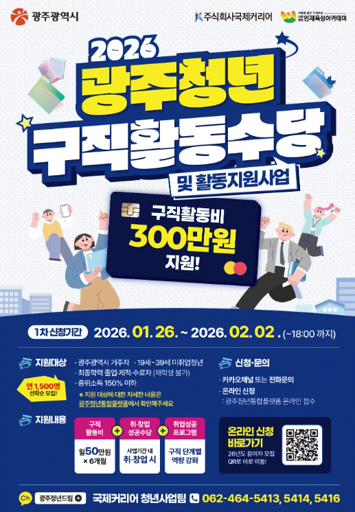 ¼±Á¤ °á°ú´Â ±¤ÁÖû³âÅëÇÕÇ÷§Æû ¸¶ÀÌÆäÀÌÁö È®ÀÎ ¶Ç´Â °³º° ¹®ÀÚ ¾È³»·Î È®ÀÎÇÒ ¼ö ÀÖÀ¸¸ç, ÃÖÁ¾ ¼±Á¤ÀÚ´Â »ç¾÷ Âü¿© Àü ¿Â¶óÀÎ ¿¹ºñ±³À° À̼ö¿Í ±¸Á÷Ȱµ¿¼ö´ç Áö±ÞÀ» À§ÇÑ Å¬¸°Ä«µå ¹ß±ÞÀ» ¸¶ÃÄ¾ß ÇÑ´Ù.