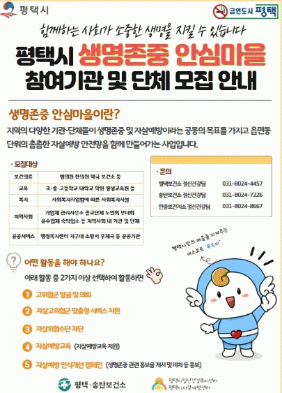 ÆòÅýà ÆòÅá¤¼Ûźº¸°Ç¼Ò´Â ÀÚ»ì °íÀ§Ç豺À» ¹Ì¸® ¹ß±¼ÇÏ°í ¸ÂÃãÇü Áö¿øÀ» Á¦°øÇÏ´Â '»ý¸íÁ¸Áß ¾È½É¸¶À»' »ç¾÷À» Áö¼ÓÀûÀ¸·Î È®´ë ¿î¿µÇÔ°ú µ¿½Ã¿¡, »ç¾÷¿¡ ÇÔ²² Âü¿©ÇÒ Áö¿ª ³» °ø°ø±â°ü°ú ¹Î°£±â°üÀ» ¸ðÁýÇÑ´Ù°í ¹àÇû´Ù.