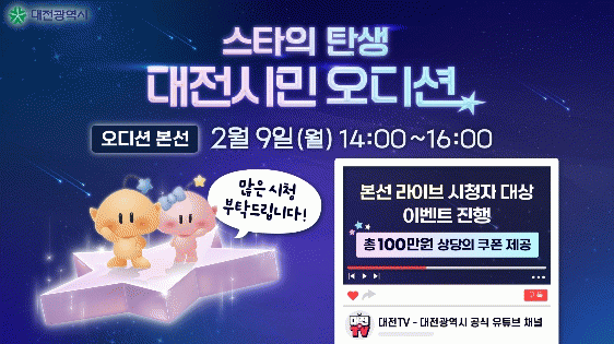 ÃÖÁ¾ ÇöÀå ¿Àµð¼ÇÀº ´ëÀü½Ã È«º¸´ë»çÀÌÀÚ °³±×¸ÇÀÎ ±è°æÁøÀÇ »çȸ·Î ÁøÇàµÇ¸ç, Âü°¡ÀÚµéÀº 1Àδç 5ºÐ¾¿ ÀڽŸ¸ÀÇ ³¢¿Í ¸Å·ÂÀ» ¼±º¸ÀÏ ¿¹Á¤ÀÌ´Ù.