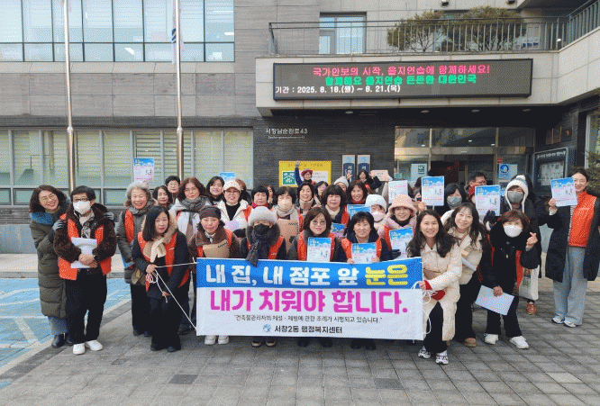 ¼°æÈñ ¼Ã¢2µ¿ÀåÀº ¡°³» Áý°ú ³» Á¡Æ÷ ¾Õ ´« Ä¡¿ì±â´Â ¹ýÀû Àǹ«ÀÌÀÚ ÀÌ¿ôÀÇ ¾ÈÀüÀ» ÁöŰ´Â °¡Àå ±âº»ÀûÀÎ ½Çõ¡±À̶ó¸ç, ¡°ÁֹΠ¸ðµÎ°¡ ÇÔ²² Âü¿©ÇØ ¾ÈÀüÇϰí ÄèÀûÇÑ ¼Ã¢2µ¿À» ¸¸µé¾î °¡±æ ¹Ù¶õ´Ù¡±¶ó°í ¸»Çß´Ù.