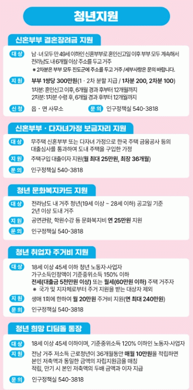 ÀÌ ¹Û¿¡µµ ¡ãû³â Ãë¾÷ÀÚ Àü¼¼¡¤¿ù¼¼ Áö¿ø(¿ù 20¸¸ ¿ø, ÃÖ´ë 1³â) ¡ã½ÅÈ¥ºÎºÎ¡¤´ÙÀÚ³à °¡Á¤ º¸±ÝÀÚ¸® Áö¿ø(ÁÖÅà ±¸ÀÔ ´ëÃâÀÌÀÚ 3³â°£ Áö¿ø) ¡ãû³â Èñ¸Á µðµõµ¹ ÅëÀå »ç¾÷(¿ù 10¸¸ ¿ø ¸ÅĪ Àû¸³, 3³â) ¡ãû³â ¹®Èº¹ÁöÄ«µå Áö¿ø(¿¬ 25¸¸ ¿ø) ¡ãû³â »ýȰ°ø±¸ ¹«·á ´ë¿© »ç¾÷ µîÀ» ÅëÇØ ÁÖ°Å¿Í ÀÚ»ê Çü¼º, »ýȰ ÆíÀǸ¦ Á¾ÇÕÀûÀ¸·Î Áö¿øÇϰí ÀÖ´Ù.