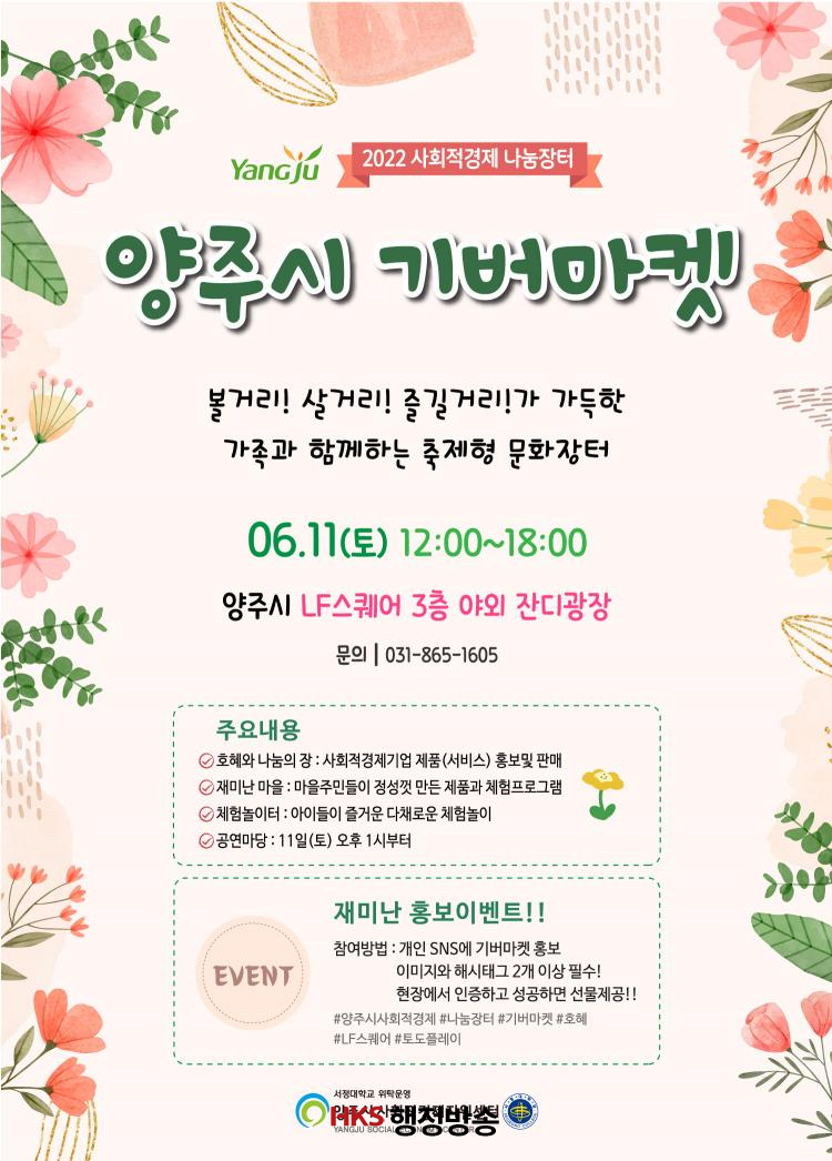 ÀÌÀü ±â¹ö¸¶ÄÏ¿¡´Â »çȸÀû°æÁ¦±â¾÷ 20°÷, ¸¶À»°øµ¿Ã¼¿Í ¼Ò»ó°øÀÎ 15°÷ÀÌ Âü¿©ÇÏ¸ç ¡®È£Çý¿Í ³ª´®ÀÇ À塯À» ÅëÇÑ »çȸÀû°æÁ¦±â¾÷ÀÇ Á¦Ç° ÆÇ¸Å¡¤È«º¸¿Í ¡®Àç¹Ì³ ¸¶À»À塯À» Ȱ¿ëÇÑ ¸¶À»°øµ¿Ã¼, ¼Ò»ó°øÀÎ ¼Ò°³°¡ ÁøÇàµÉ ¿¹Á¤ÀÌ´Ù.