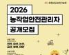[HKSÇàÁ¤¹æ¼Û] Ãæ³²µµ ³ó¾÷±â¼ú¿øÀº ³ó¾÷ ÇöÀåÀÇ ÀçÇØ ¿¹¹æ°ú ¾ÈÀü°ü¸® °È¸¦ À§ÇØ ¿À´Â 12¿ù 19ÀϱîÁö ¡®³óÀÛ¾÷¾ÈÀü°ü¸®ÀÚ¡¯¸¦ °ø°³ ¸ðÁýÇÑ´Ù. À̹ø ¸ðÁýÀº 2026³â »ç¾÷ ÃßÁøÀ» À§ÇÑ °ÍÀ¸·Î, õ¾È¡¤¾Æ»ê¡¤³í»ê¡¤±Ý»ê¡¤ºÎ¿©¡¤ÅÂ¾È µî 6°³ ½Ã±º³ó¾÷±â¼ú¼¾ÅÍ¿Í Çù·ÂÇØ ±Ù¹«ÇÒ Àü¹®¾ÈÀüÀη 12¸í(½Ã±º´ç 2¸í)À» ¼±¹ßÇÒ ¿¹Á¤ÀÌ´Ù. ¡®³óÀÛ¾÷¾È¡¦