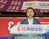 [HKSÇàÁ¤¹æ¼Û] â¿øÆ¯·Ê½Ã´Â 10ÀÏ Ã¢¿ø½Ç³»Ã¼À°°ü¿¡¼ (»ç)°æ³²±âµ¶±³ÃÑ¿¬ÇÕȸ ÁÖ°üÀ¸·Î ¿¸° ¡®±¤º¹ 80Áֳ⠱â³ä ´ÙÀ½¼¼´ë¿Í ÇÔ²² ÇÏ´Â 8¡¤15 Ưº°¼ºÈ¸¡¯°¡ Áö¿ª ¼ºµµ 5,000¿© ¸íÀÌ Âü¼®ÇÑ °¡¿îµ¥ ¼ºÈ²¸®¿¡ °³ÃÖµÆ´Ù°í ¹àÇû´Ù. À̹ø Çà»ç´Â ±¤º¹ 80ÁÖ³âÀ» ¸Â¾Æ ´ëÇѹα¹ÀÇ ÀÚÀ¯¿Í µ¶¸³À» ±â³äÇϰí, »õ·Î¿î ¼¼´ë¿Í ÇÔ²² ±× Àǹ̸¦ µÇ»õ±â¸ç ´ë¡¦