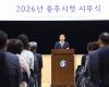 [HKSÇàÁ¤¹æ¼Û]ûÁֽô 2ÀÏ Ã»ÁÖ¿¹¼úÀÇÀü´ç ´ë°ø¿¬Àå¿¡¼ 2026³â ½Ã¹«½ÄÀ» °³ÃÖÇÏ°í »õÇØ ½ÃÁ¤ ¿î¿µÀÇ ÈûÂù Ãâ¹ßÀ» ¾Ë·È´Ù. À̳¯ ½Ã¹«½Ä¿¡´Â À̹ü¼® ûÁÖ½ÃÀå, ½Åº´´ë ºÎ½ÃÀåÀ» ºñ·ÔÇÑ ½Ã Á÷¿øµé°ú »êÇϱâ°ü °ü°èÀÚ µî 1õ200¿©¸íÀÌ Âü¼®ÇØ »õÇØ °¢¿À¸¦ ´ÙÁ³´Ù. Çà»ç Àü¿¡´Â Á÷¿ø °£ ´ã¼Ò ½Ã°£ÀÌ ¸¶·ÃµÆÀ¸¸ç, ¿ÀÀü 9½ÃºÎÅÍ ±¹¹ÎÀǷʸ¦ ½ÃÀÛÀ¸·Î¡¦