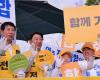 [HKSÇàÁ¤¹æ¼Û]ÀüÁֽð¡ ¿ÏÁÖ-ÀüÁÖ ÅëÇÕÀÇ Çʿ伺°ú ´çÀ§¼º¿¡ ´ëÇÑ °ø°¨´ë¸¦ È®»ê½Ã۱â À§ÇÑ ´ë±Ô¸ð È«º¸ Ä·ÆäÀÎÀ» À§ÇØ ½Ã¹Îµé°ú ¼ÕÀ» ¸ÂÀâ°í °Å¸®·Î ³ª¼¹´Ù. ½Ã´Â 28ÀÏ À̸¥ ¾ÆÄ§ È£³²Á¦ÀϹ®±¤Àå »ç°Å¸® ÀÏ´ë¿¡¼ ÃÑ 28°³ ¹Î°£´Üü¿Í ÇÔ²² ¡®¿ÏÁÖ-ÀüÁÖ ÅëÇÕ ¿°¿øÀ» ´ãÀº ¹ü½Ã¹Î Ãâ±Ù±æ ÅëÇÕ Ä·ÆäÀΡ¯À» Àü°³Çß´Ù. À̳¯ Ä·ÆäÀο¡´Â ¿ì¹ü±â Àü¡¦
