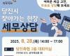[HKSÇàÁ¤¹æ¼Û]´çÁø½Ã´Â 7¿ù 28ÀϺÎÅÍ 8¿ù 27ÀϱîÁö 3ºÐ±â¡ºÃ£¾Æ°¡´Â ÇöÀå ¹«·á ¼¼¹«»ó´ã¡» »çÀü ½Åû Á¢¼ö¸¦ ÇÑ´Ù°í 25ÀÏ ¹àÇû´Ù. À̹ø »ó´ãÀº ¿ÃÇØ µé¾î ¼¼ ¹øÂ°·Î ¿¸®´Â ÇöÀå ¼¼¹« »ó´ãÀ¸·Î, 8¿ù 28ÀÏ ¸ñ¿äÀÏ ¿ÀÈÄ 2½ÃºÎÅÍ 5½Ã±îÁö ´çÁøÃà»ê³óÇù(¾Æ¹Ì·Î 833, ¼³¾Ç¿þµùȦ ¿·) 2Ãþ ´ëȸÀǽǿ¡¼ ÁøÇàµÈ´Ù. ´çÁø½Ã¹Î ´©±¸³ª ±¹¼¼ ¹× Áö¹æ¼¼, Áö¡¦